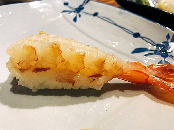 就像是模型一樣的呈現,整隻蝦服服貼貼的在醋飯上,視覺味覺都享受