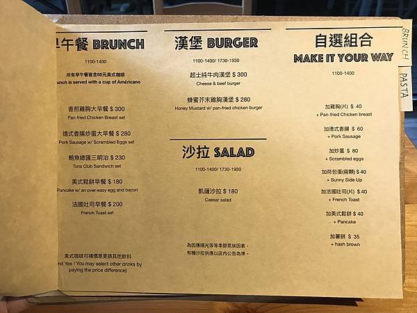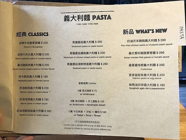 餐點的部分:招牌牛肉醬筆管麵/青醬蘑菇海鮮總匯義大利麵/起司純牛肉堡